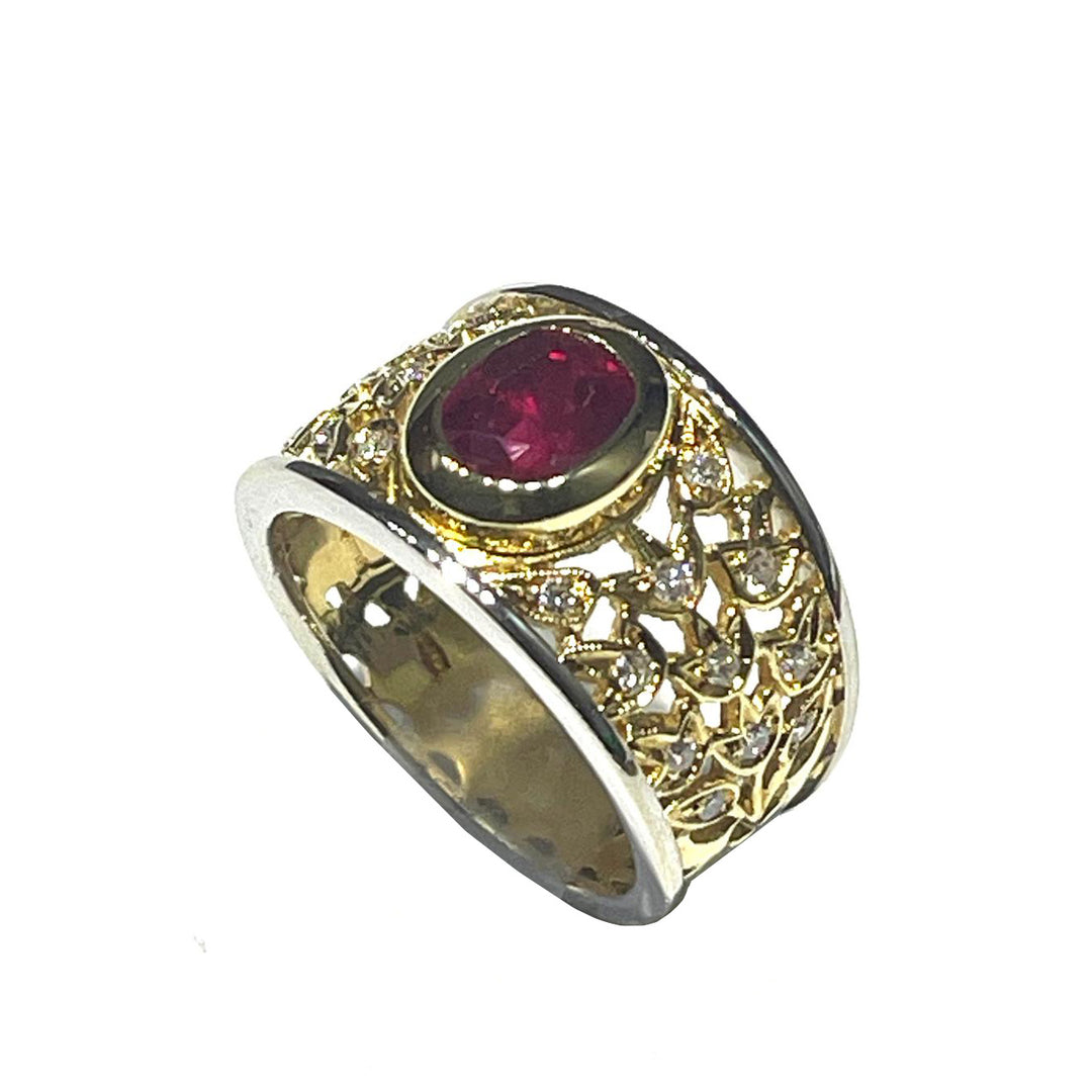 Capodagli anello fascia Fantasia Floreale oro giallo e giallo 18kt rubino e diamanti