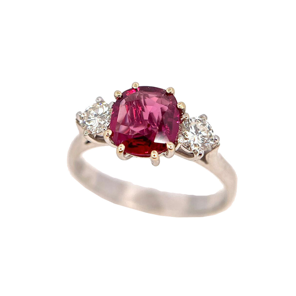 Capodagli anello oro bianco 18kt Rubino Thailandia 1,23ct e diamanti