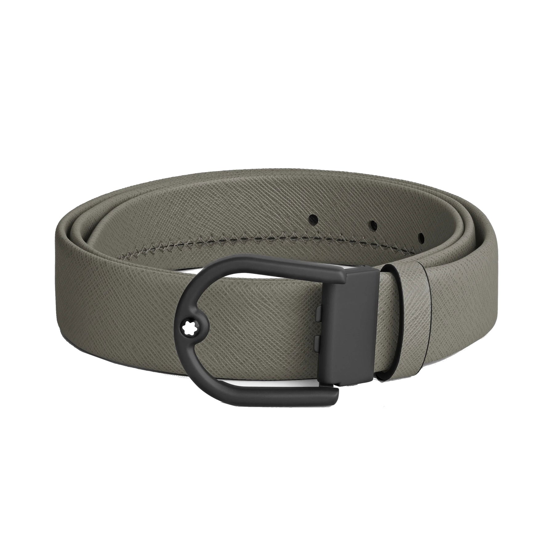 Montblanc cintura da 35 mm in pelle grigia medio con fibbia a ferro di cavallo 199633