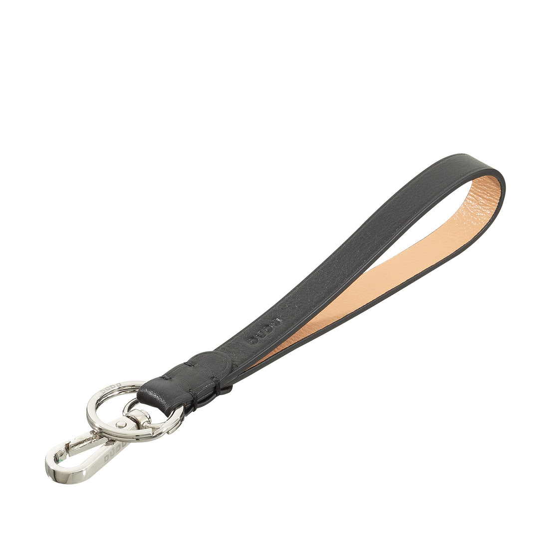 DUDU Cordino Laccio da Collo con Anello e Moschettone Metal in Vera Pelle, Laccetto per Chiavi, Porta Badge, Auto, Portachiavi