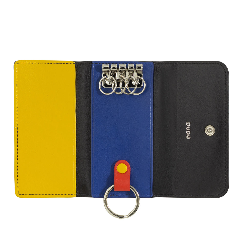 DUDU Astuccio Portachiavi in Pelle Colorato con 5 Anelli per Chiavi di Casa Auto, Design Minimal, con Bottone