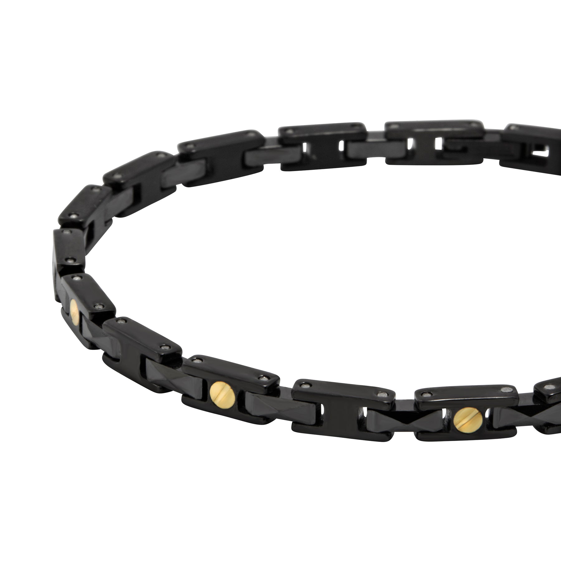 Il bracciale Ceramic Brick si distingue per l’alternanza di elementi in ceramica nera e dettagli in acciaio lucido black, un connubio che crea un contrasto audace e contemporaneo. Tre viti gold, posizionate con cura, aggiungono un tocco di luce che valorizza ulteriormente il design. La chiusura a gioielleria consente di regolare facilmente la lunghezza del bracciale, garantendo una vestibilità perfetta e confortevole.