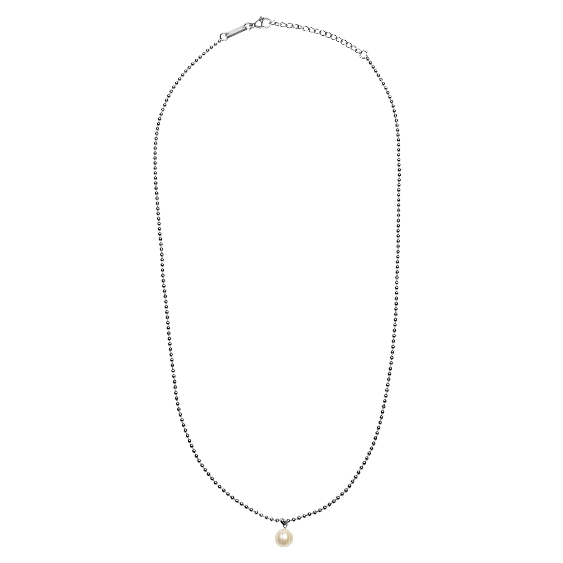La collana Hazard si distingue per il suo design eclettico e ricercato. Caratterizzata da una ball chain in acciaio lucido, composta da piccole sfere che si susseguono, è impreziosita da un pendente con perla naturale di acqua dolce. Attuale e versatile, è perfetta per chi cerca uno stile originale e di tendenza. La chiusura regolabile permette di modificare facilmente la misura della collana.
