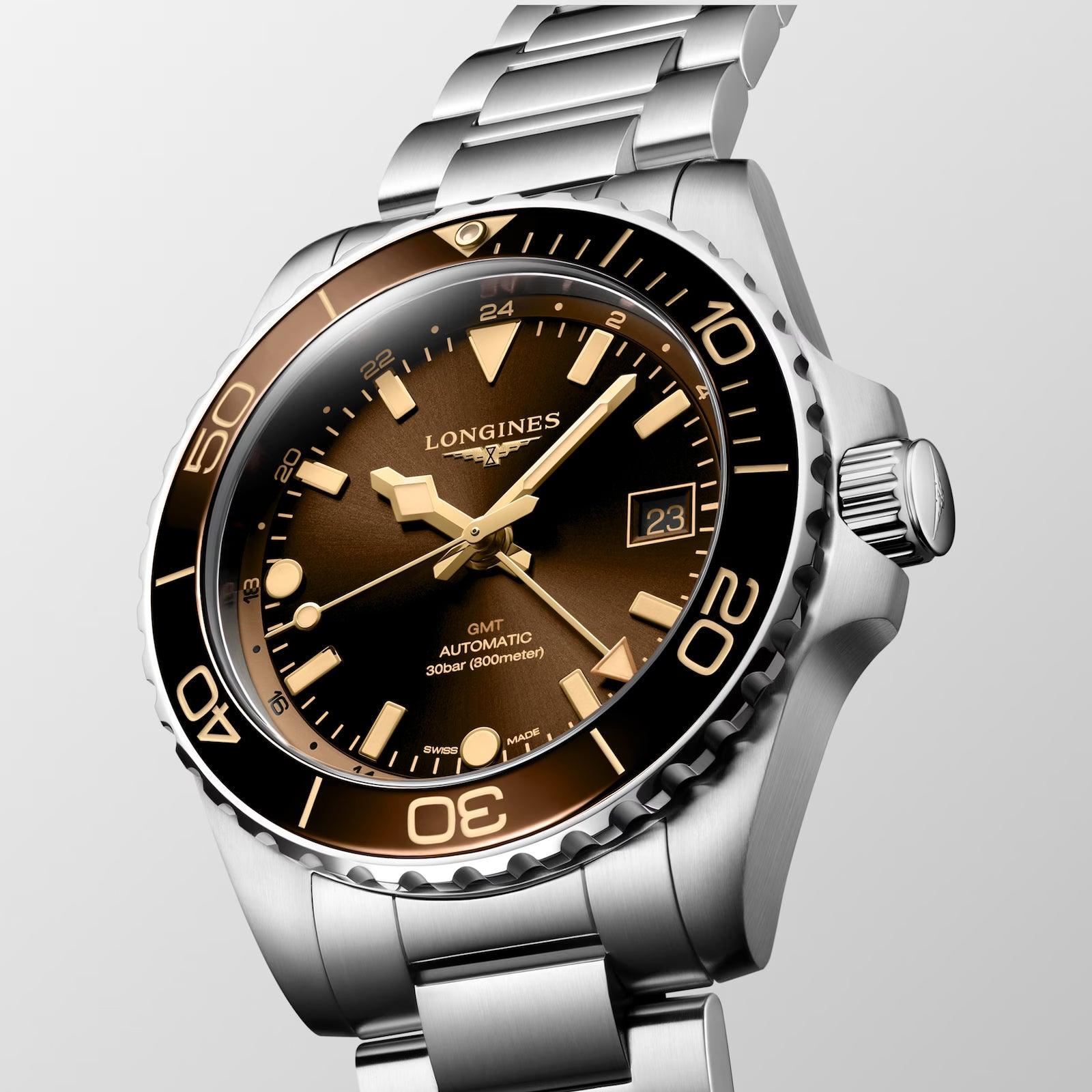 Longines orologio Hydroconquest GMT 41mm marrone automatico acciaio L3.790.4.66.6