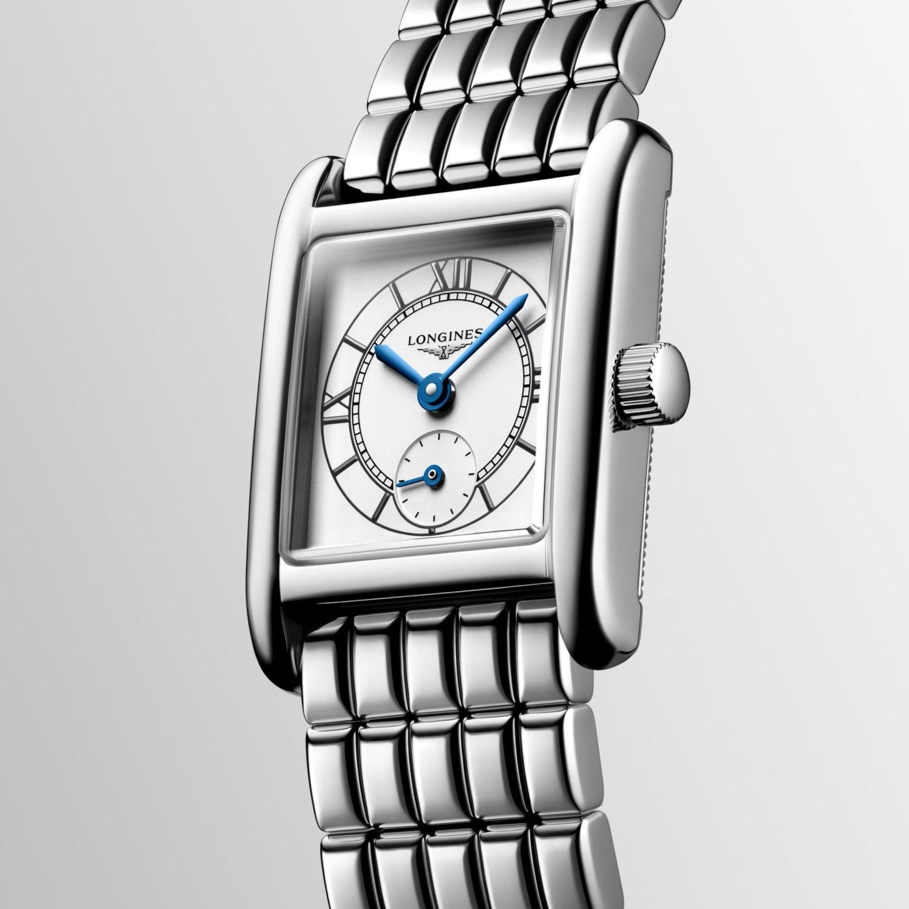Con il suo profilo discreto, lo stile classico e le variazioni estetiche, attuali ma senza tempo, Mini DolceVita è un piccolo grande capolavoro che esprime il lusso pacato e l’eleganza contemporanea di Longines. Ogni referenza della collezione Mini DolceVita presenta una cassa rettangolare in acciaio inossidabile da 21,50 mm x 29,00 mm ed è alimentata da un movimento al quarzo L178 ad alta precisione.
