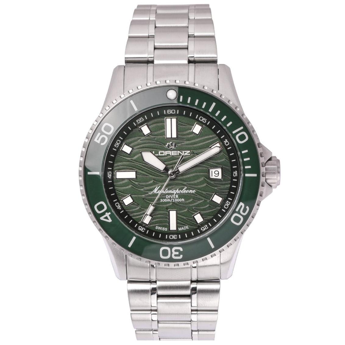 Lorenz orologio Montenapoleone Diver 42mm verde quarzo acciaio 090010DD