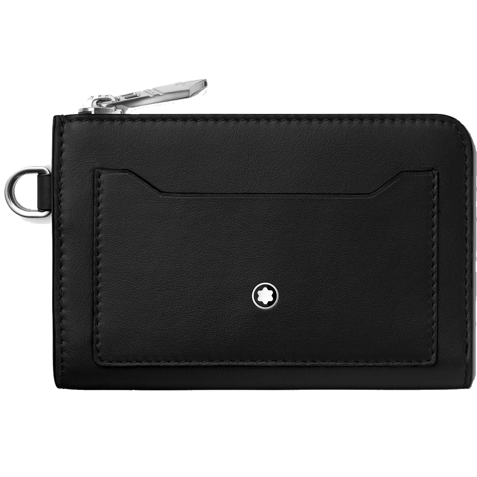 La custodia per chiavi Meisterstück con quattro scomparti per carte è realizzata in una nuova pelle nera lucida. Il suo nuovo design geometrico puro esalta l'essenza della funzionalità, con più scomparti per carte, tasca con cerniera e gancio. Questa custodia può essere trasportata comodamente con una tracolla (venduta) o riposta in tasca.