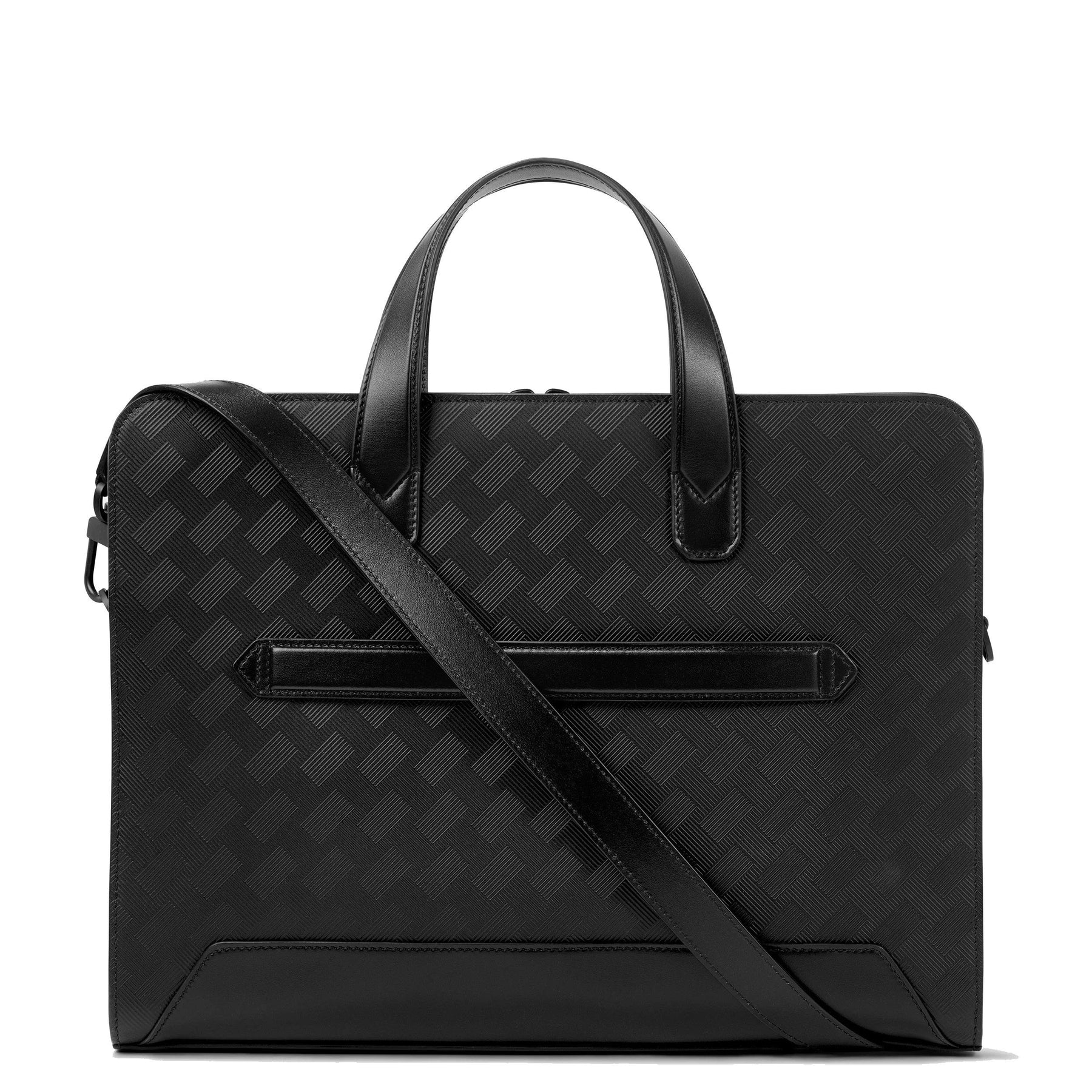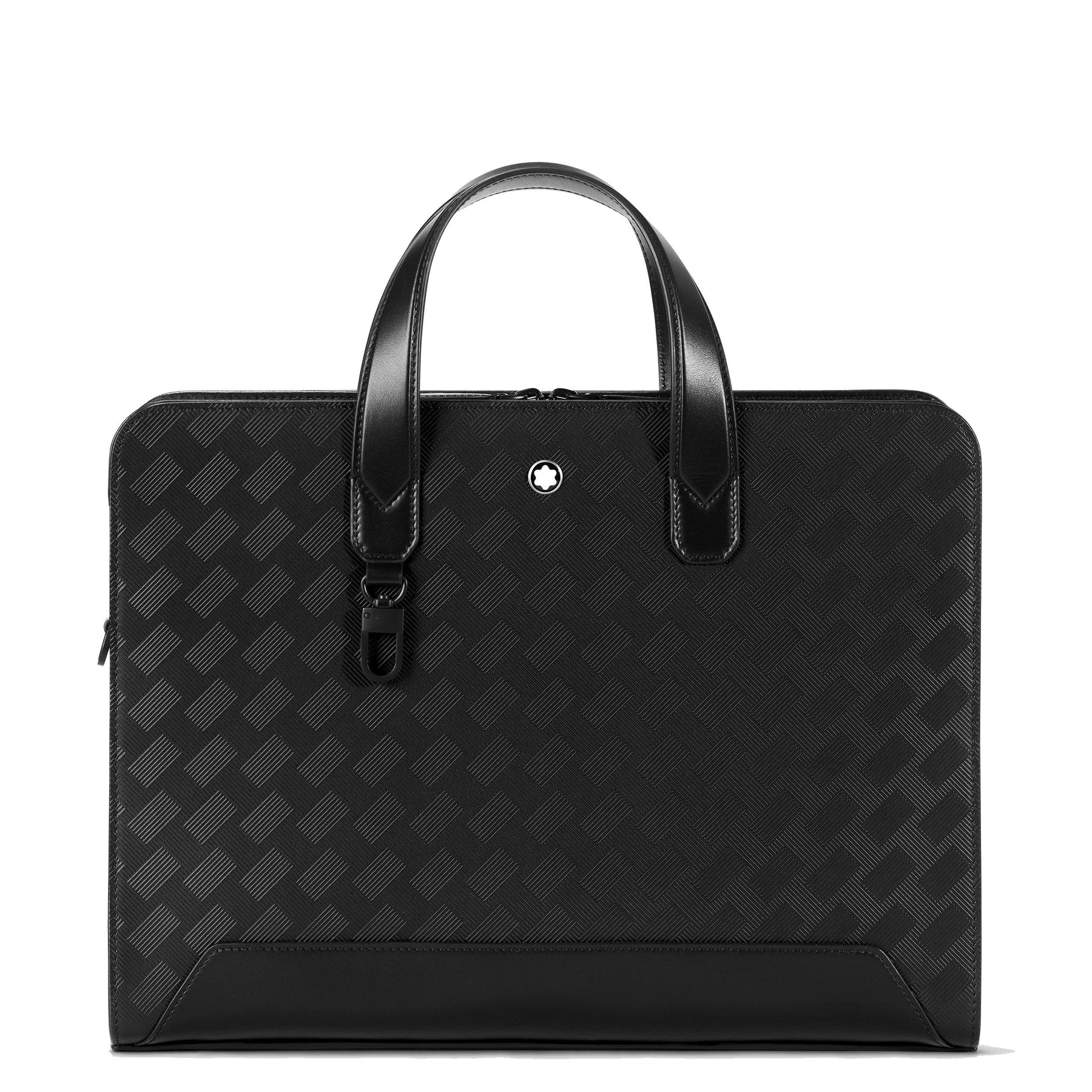 Una borsa contemporanea pensata per offrire funzionalità e praticità ai moderni cittadini metropolitani. La pelle bovina pieno fiore goffrata con motivo Montblanc Extreme 3.0 e i dettagli in metallo nero offrono uno stile inconfondibile. È il compagno quotidiano perfetto per ogni tipo di meeting, con spazio interno per documenti formato A4, strumenti da scrittura e altri oggetti essenziali grazie alla tasca con cerniera e a due passanti per strumenti da scrittura.