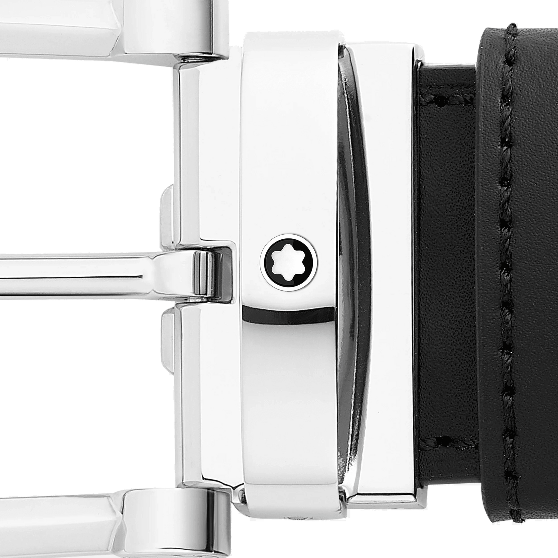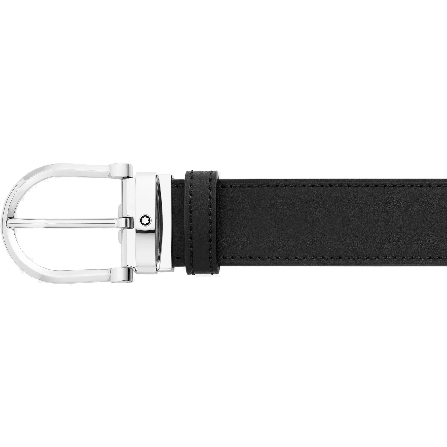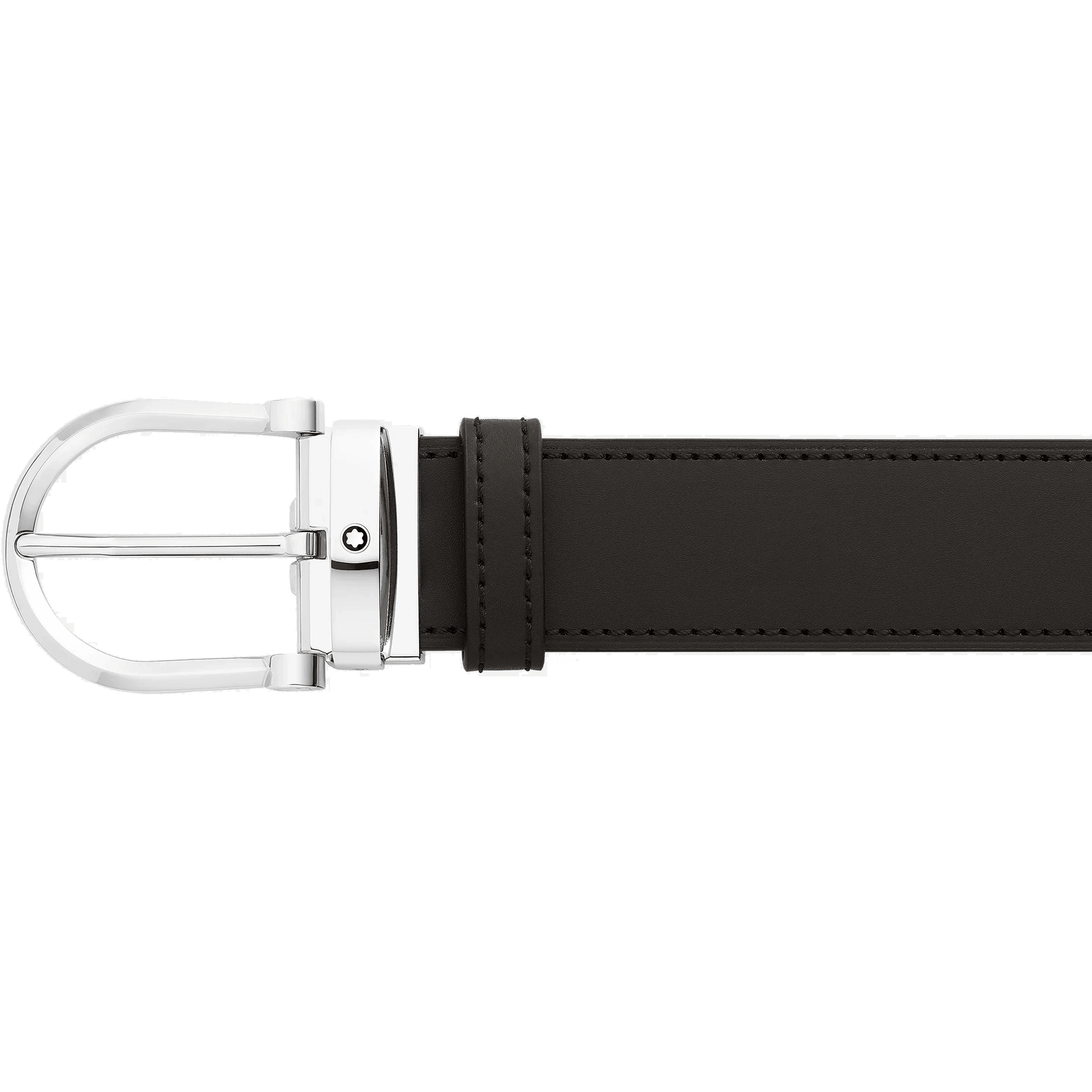 Montblanc cintura 35mm reversibile in pelle nera/marrone con fibbia a ferro di cavallo 128783