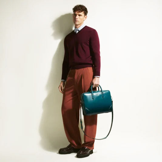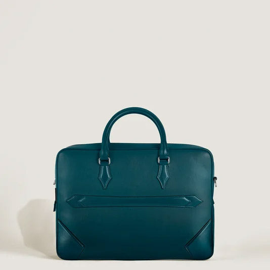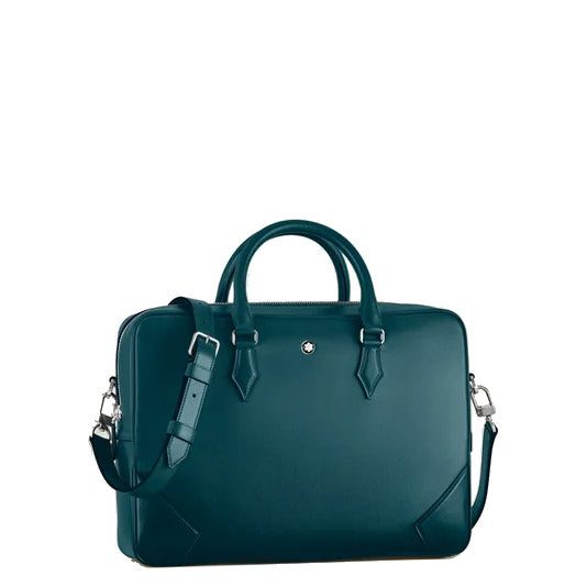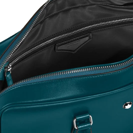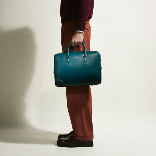 Realizzata a mano con pelle pregiata, la borsa porta documenti Meisterstück di Montblanc è il simbolo dell'artigianato di alta qualità. Il lusso della pelle blu Cipro è enfatizzato dalla tecnica di colorazione sfumata a mano. I dettagli come le impunture e i cursori della cerniera richiamano il celebre pennino di Montblanc. Dispone di comode tasche e offre diverse modalità di trasporto grazie ai manici, alla tracolla rimovibile e al sistema satellite.