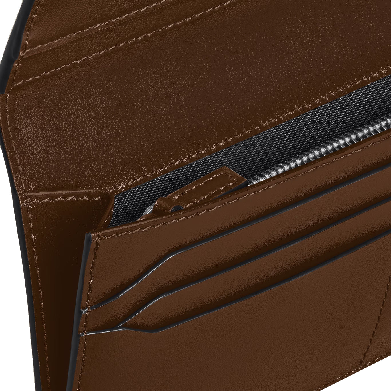 Accessorio elegante che non dimentica la funzionalità, questo portafoglio è realizzato in pelle Meisterstück liscia marrone con effetto Sfumato applicato a mano e presenta una grande, sicura tasca con cerniera per monete o oggetti essenziali. Con 14 apposite aperture per carte di credito, due scomparti per banconote e due tasche aggiuntive per ricevute, offre ampio spazio e un look elegante.