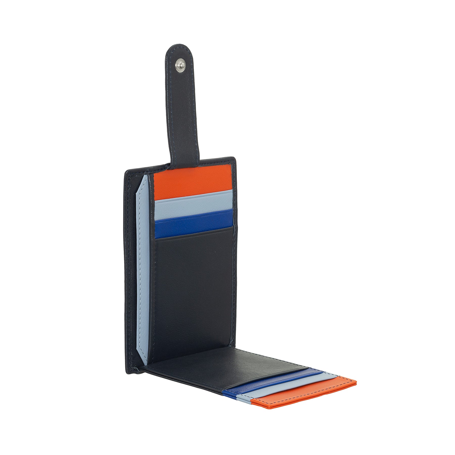 Porta carte di credito multicolore in vera morbida pelle di vitello. Molteplici tasche porta carte di credito e fettuccia esterna di chiusura. 2 tasche porta documenti o banconote. Accessorio unisex versatile e compatto da tenere sempre con voi.