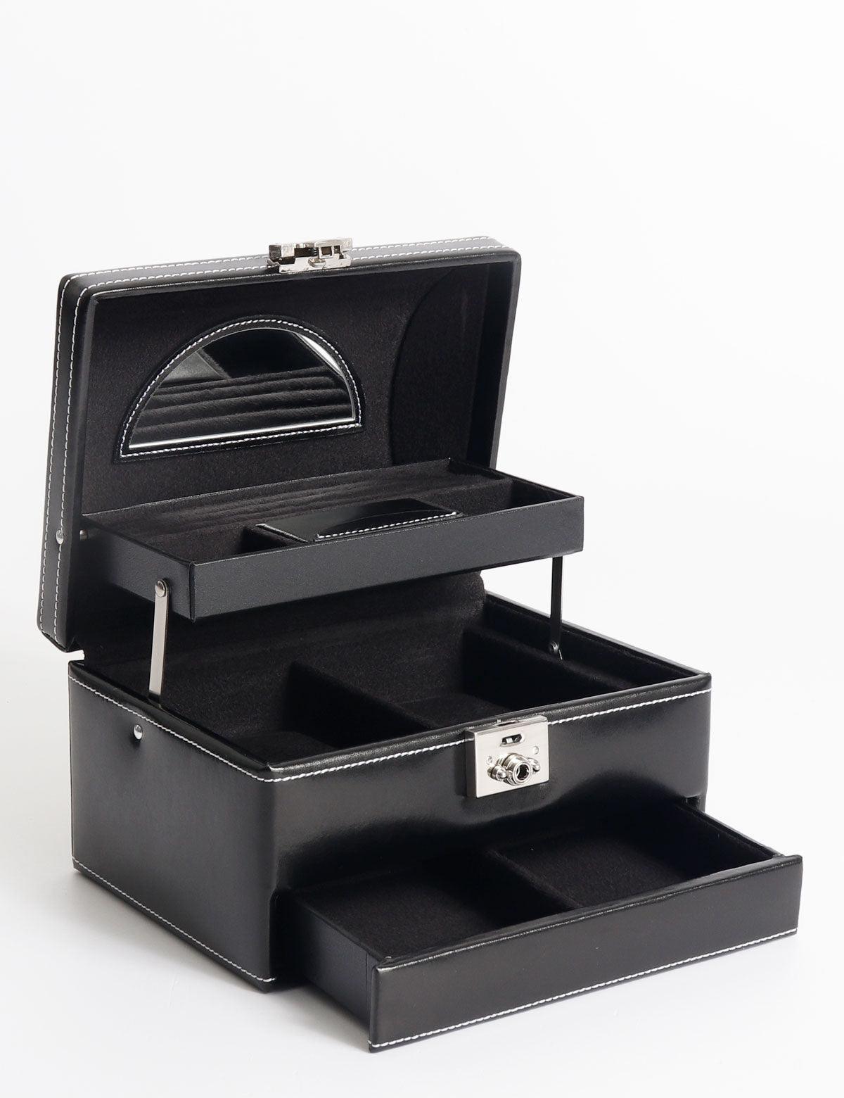 Scatola porta gioielli in pelle Friedrich23 dal design rigido, con manico superiore e chiusura in metallo. Modello con cassettino