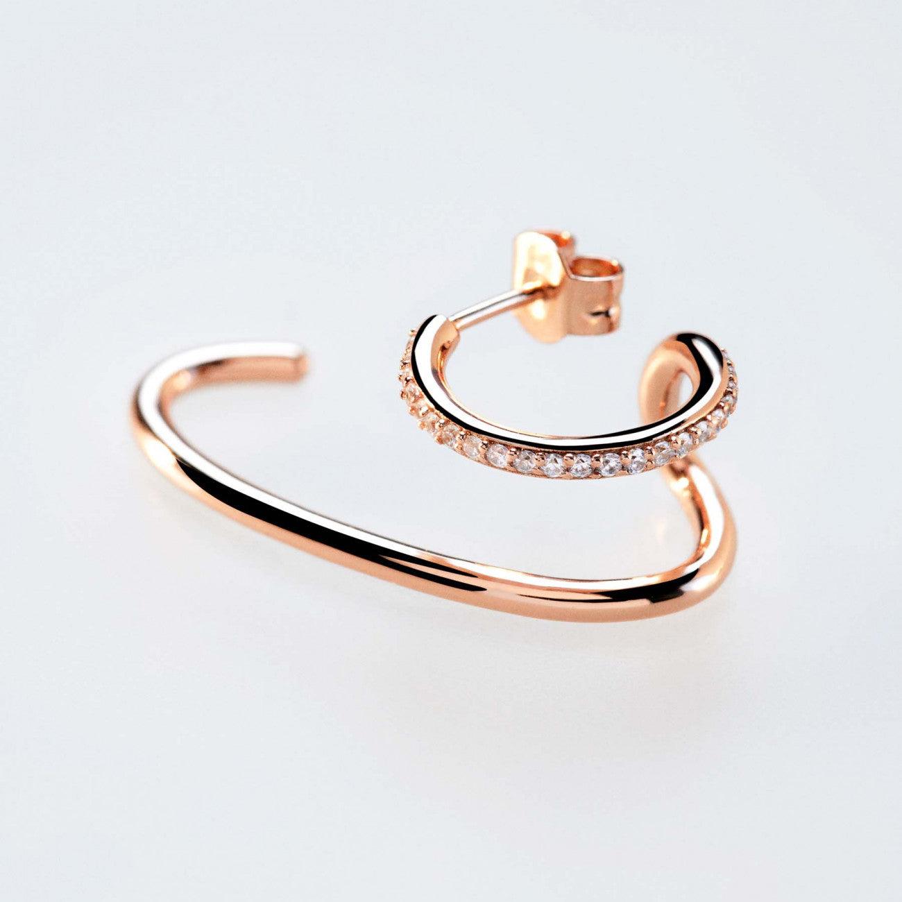 Rosato orecchini doppi Bianca argento 925 finitura PVD oro rosa cubic zirconia RZBI.47