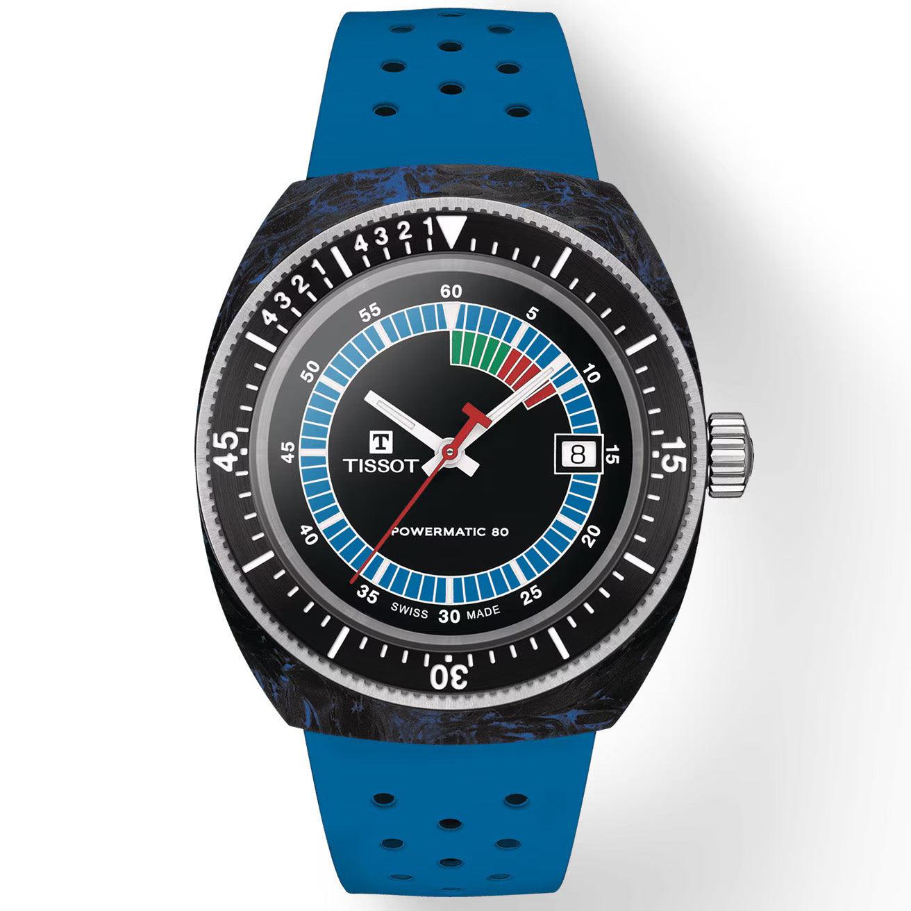 Scopri il Tissot Sideral, un'accattivante fusione di fascino vintage e artigianato moderno. L'orologio presenta una cassa in carbonio da 41 mm e un vivace cinturino blu, che rende omaggio alle sue iconiche radici degli anni '70. Il quadrante multicolore ne esalta il fascino unico. Impermeabile fino a 30 bar (300 metri) e dotato di indici rivestiti in Super-LumiNova®, il Sideral è un pezzo unico per i trendsetter e gli appassionati di storia. Il cinturino in caucciù perforato intercambiabile consente un facile adattamento dello stile. Abbraccia lo straordinario con il Tissot Sideral.