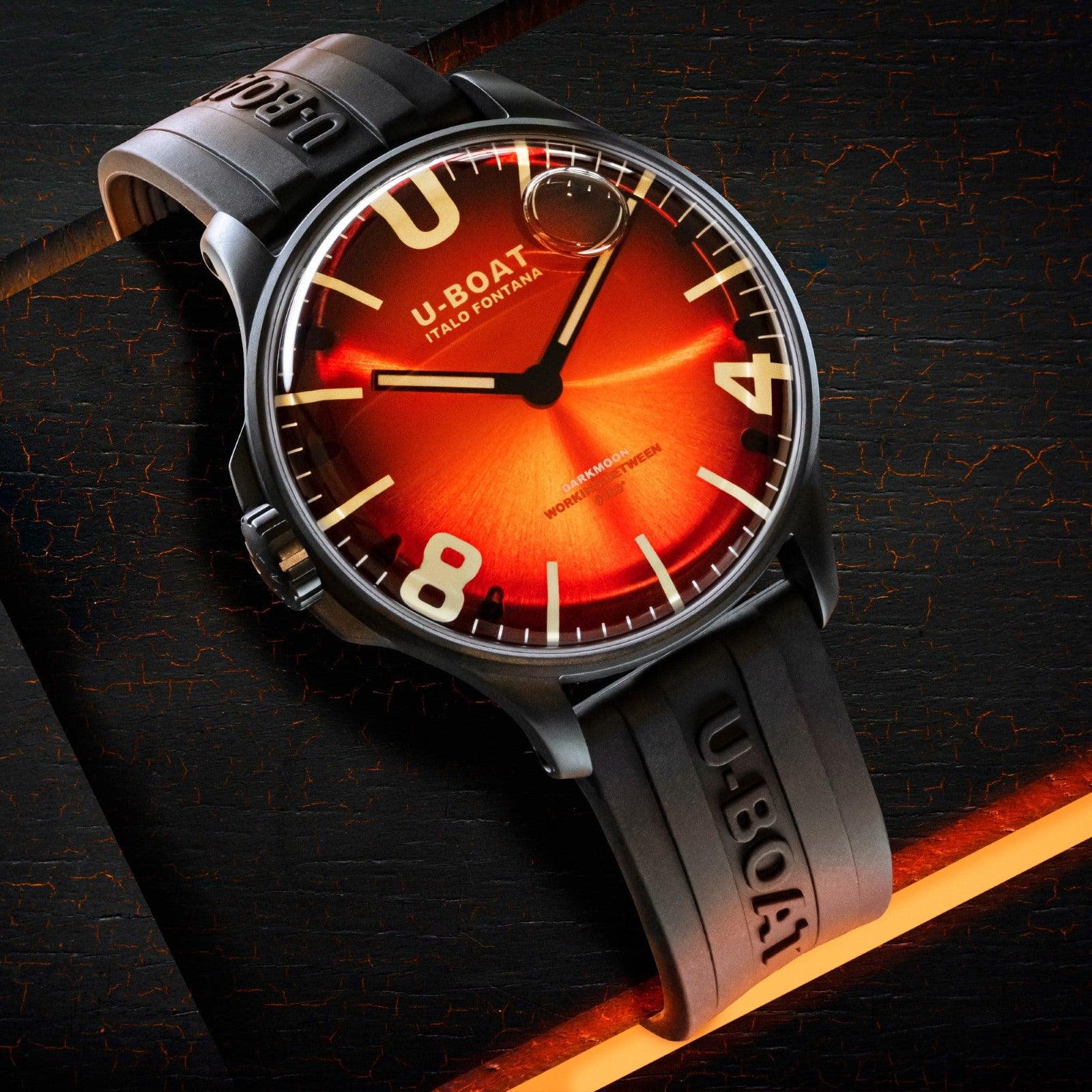 U-BOAT orologio Darkmoon Red IPB Soleil 44mm rosso quarzo acciaio finitura IP Black 8697/B
