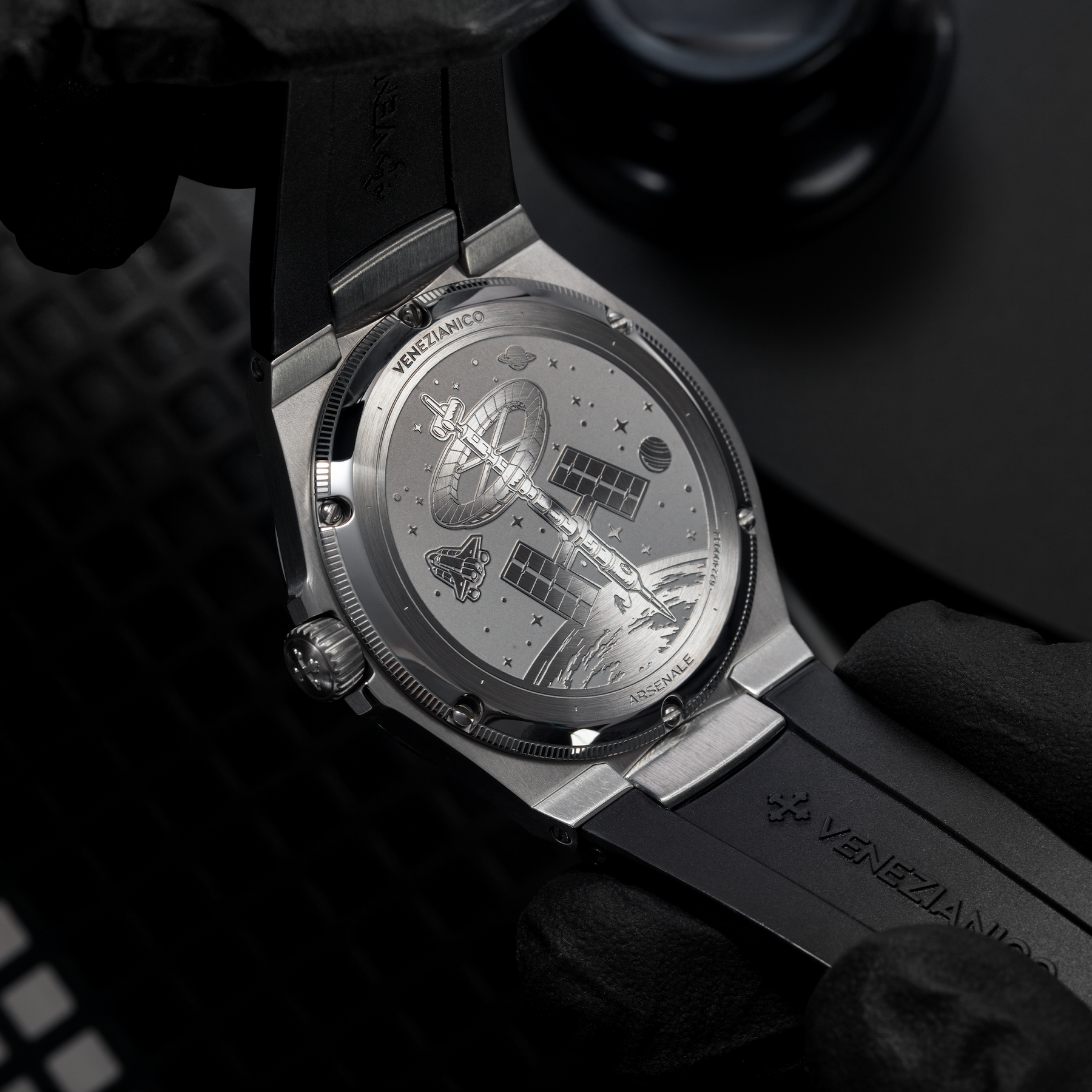 Arsenale si tinge di nero assoluto in questa variante essenziale e moderna: nasce Arsenale Ultrablack. Grazie all’impiego della vernice Musou Black™, capace di assorbire il 99,4% della luce, il quadrante raggiunge una profondità unica, enfatizzando l’estetica minimale del design. Le linee pulite della cassa e le finiture in acciaio spazzolato e lucido conferiscono un carattere deciso e contemporaneo, facendo di Arsenale Ultrablack un segnatempo che esalta la purezza del minimalismo unita all’innovazione tecnica.