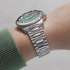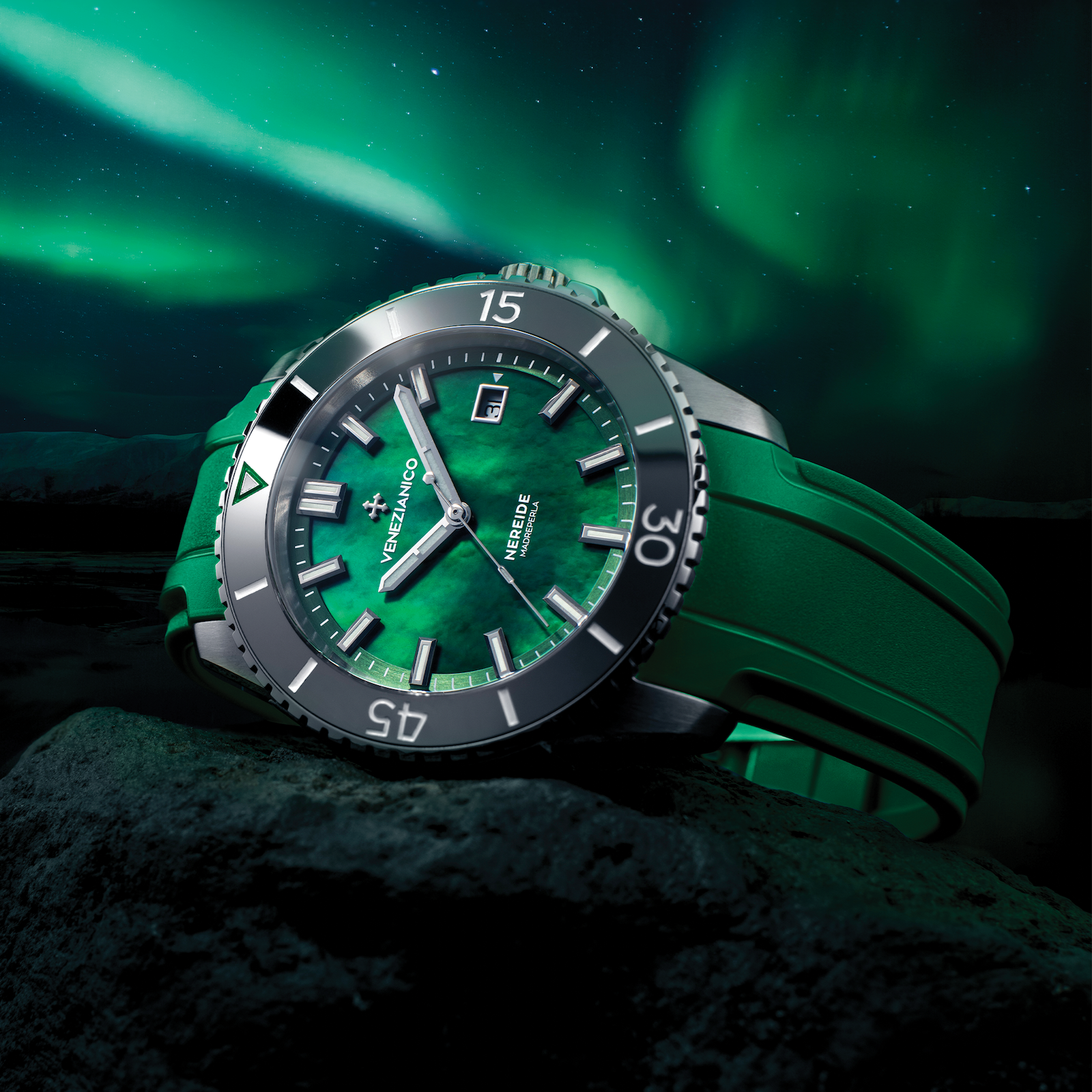 Questo Nereide prende il nome dalla madreperla, un tesoro marino amato per la sua lucentezza e i suoi riflessi iridescenti. Il quadrante in madreperla offre una bellezza unica, con sfumature delicate e riflessi scintillanti che evocano l'incanto dell'aurora boreale nel cielo notturno.