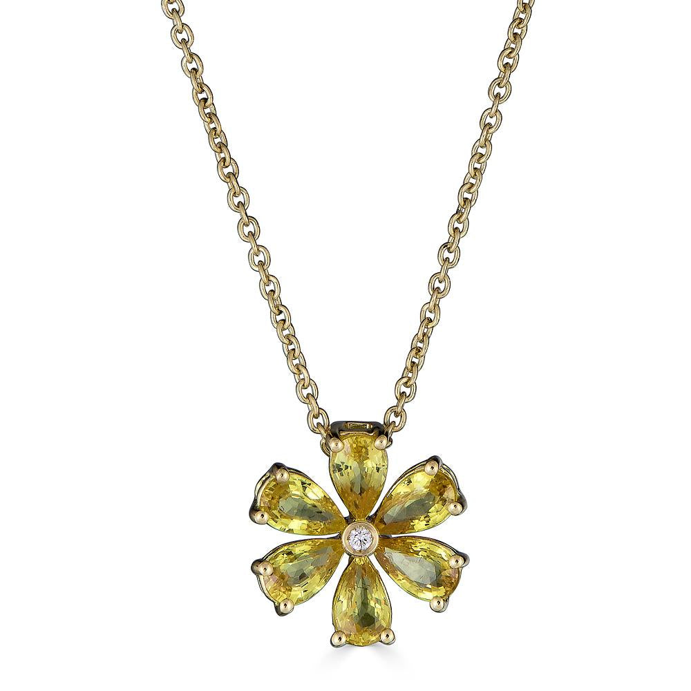 Zydo ciondolo a forma di fiore con pietre preziose colorate e diamanti oro giallo zaffiro giallo 62040